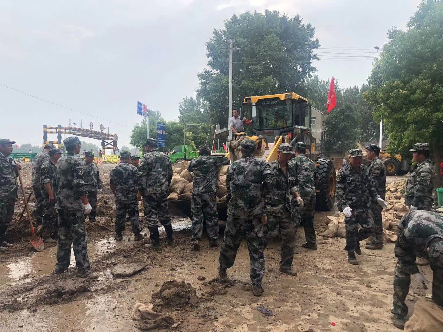 7月21日中午2:10分,突擊隊(duì)再次接到縣防汛指揮部命令,古河鎮(zhèn)滁河大堤漫堤汛情嚴(yán)重,要求突擊隊(duì)立即組織設(shè)備前往支援。突擊隊(duì)馬上安排平板車先行運(yùn)送4臺(tái)裝載機(jī),11名突擊隊(duì)員隨車出發(fā),于中午2:45分到達(dá)目的地,隨即與地方政府取得聯(lián)系,配合消防戰(zhàn)士、解放軍官兵及抗洪干部群眾運(yùn)送沙袋、物資。由于該處汛情較為嚴(yán)重,截止到發(fā)稿之時(shí),該處的抗洪救災(zāi)工作還在繼續(xù)當(dāng)中。