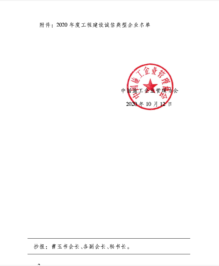 該榮譽(yù)是中國(guó)施工企業(yè)管理協(xié)會(huì)為深入誠(chéng)信建設(shè),在工程建設(shè)企業(yè)領(lǐng)域內(nèi)樹(shù)立一大批誠(chéng)實(shí)守信、責(zé)任感強(qiáng)、富有擔(dān)當(dāng)?shù)墓こ探ㄔO(shè)企業(yè),充分展現(xiàn)誠(chéng)信精神,誠(chéng)信力量,進(jìn)一步激勵(lì)企業(yè)在誠(chéng)信建設(shè)上爭(zhēng)先創(chuàng)優(yōu)。據(jù)悉,本次在全國(guó)范圍內(nèi)共評(píng)定331家企業(yè)為“2020年度工程建設(shè)誠(chéng)信典型企業(yè)”。
