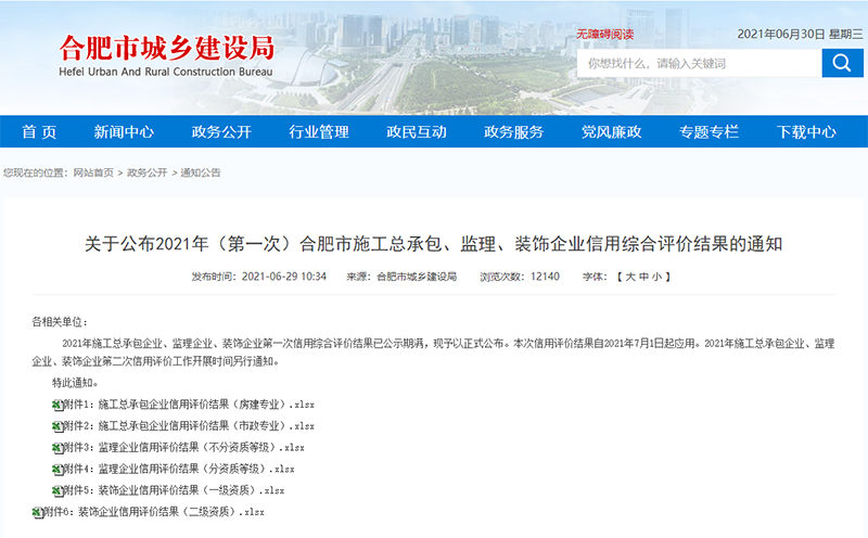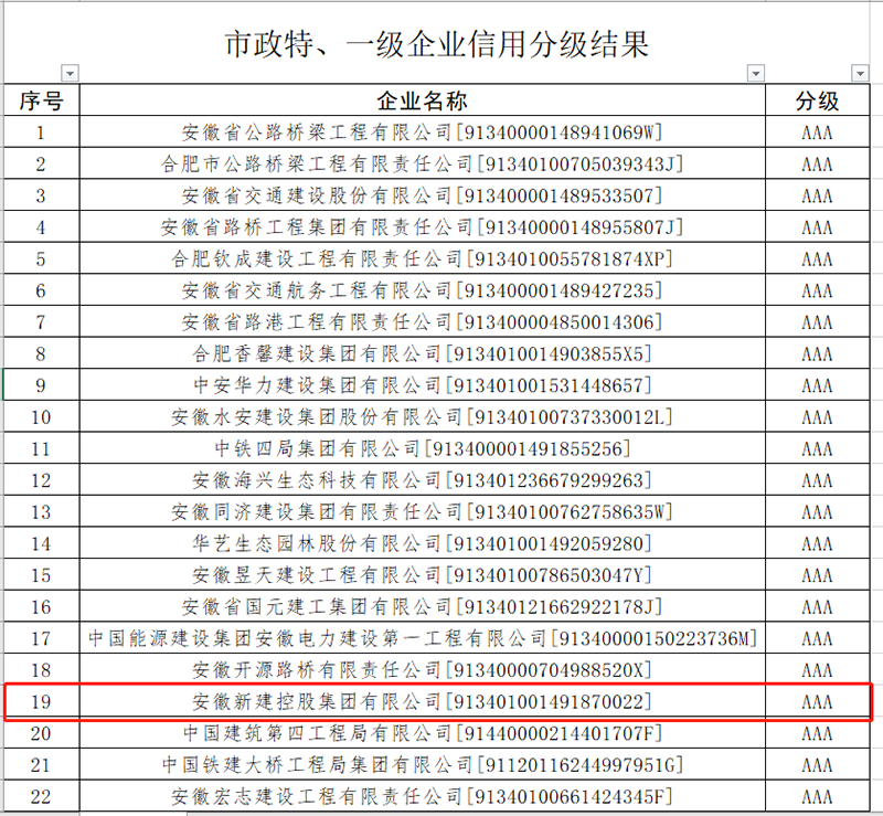 6月29日,合肥市城鄉(xiāng)建設(shè)局正式公布合肥市施工總承包企業(yè)、監(jiān)理企業(yè)、裝飾企業(yè)第一次信用綜合評(píng)價(jià)結(jié)果,新建控股集團(tuán)公司榮獲合肥市施工總承包企業(yè)市政一級(jí)、房建一級(jí)AAA級(jí)綜合信用評(píng)價(jià)榮譽(yù)。