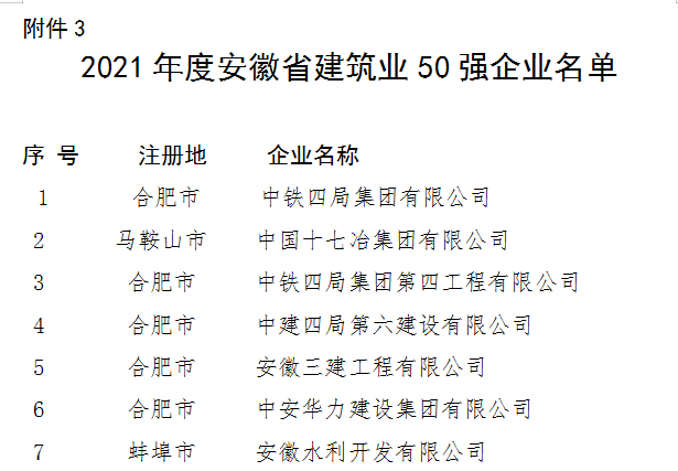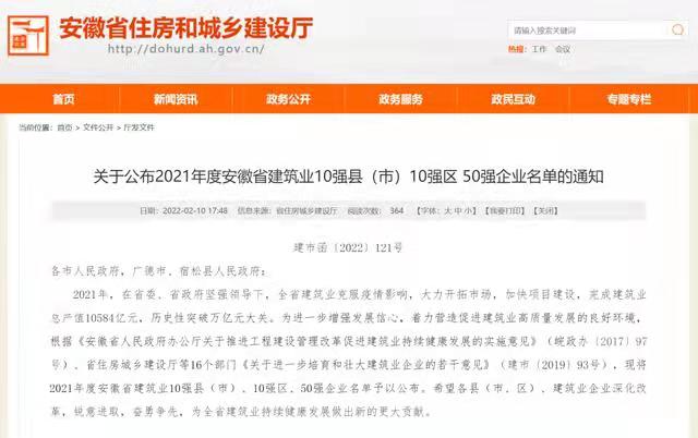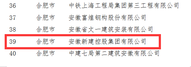 二月瑞雪兆豐年,金虎嘯春啟新程。2月10日,安徽省住房和城鄉(xiāng)建設廳公布了2021年度安徽省建筑業(yè)10強縣(市)、10強區(qū)、50強企業(yè)名單,安徽新建控股集團榮登我省建筑業(yè)50強,并名列第39位。