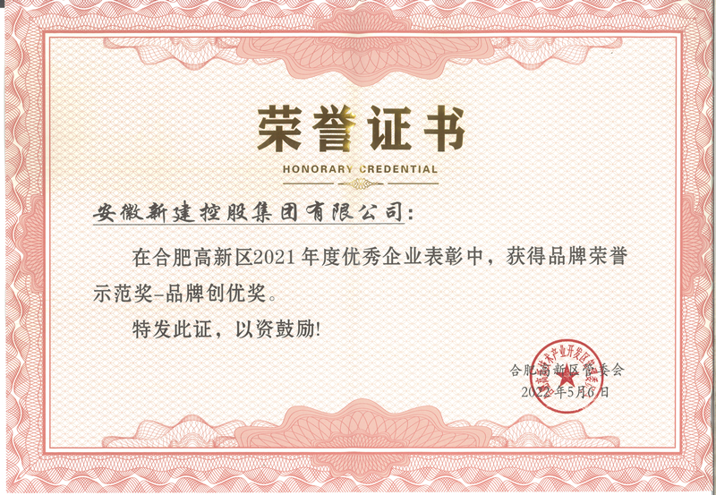 為推動高新區(qū)經(jīng)濟(jì)持續(xù)穩(wěn)定發(fā)展,進(jìn)一步發(fā)揮企業(yè)示范效應(yīng),發(fā)揮獎勵資金引導(dǎo)作用,6月10日,合肥高新區(qū)召開2022年企業(yè)表彰大會,安徽新建控股集團(tuán)在此次表彰中,榮獲品牌榮譽(yù)示范獎——品牌創(chuàng)優(yōu)獎。