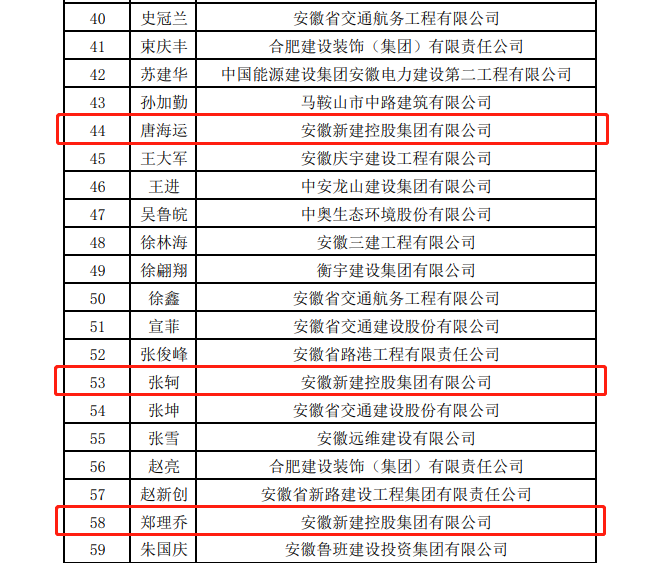 1月3日,安徽建筑業(yè)協(xié)會官網(wǎng)發(fā)布2022年度安徽工程建設(shè)誠信典型企業(yè)、誠信企業(yè)家、誠信項目經(jīng)理名單,安徽新建控股集團(tuán)榮獲“2022年度安徽工程建設(shè)誠信典型企業(yè)”,公司總經(jīng)理王鵬程獲評“誠信企業(yè)家”,唐海運、張軻、鄭理喬分獲“誠信項目經(jīng)理”稱號。