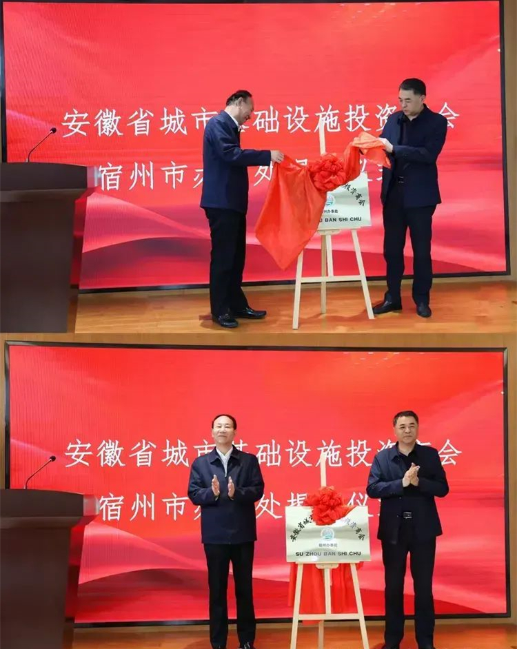 安徽省工商聯(lián)宣教處副處長(zhǎng)(主持工作)張鳳翔與安徽省城市基礎(chǔ)設(shè)施投資商會(huì)會(huì)長(zhǎng)、安徽新建控股集團(tuán)有限公司董事長(zhǎng)王杰英共同為宿州市辦事處揭牌,現(xiàn)場(chǎng)掌聲雷動(dòng),這一時(shí)刻宣告辦事處全面投入運(yùn)營(yíng)。