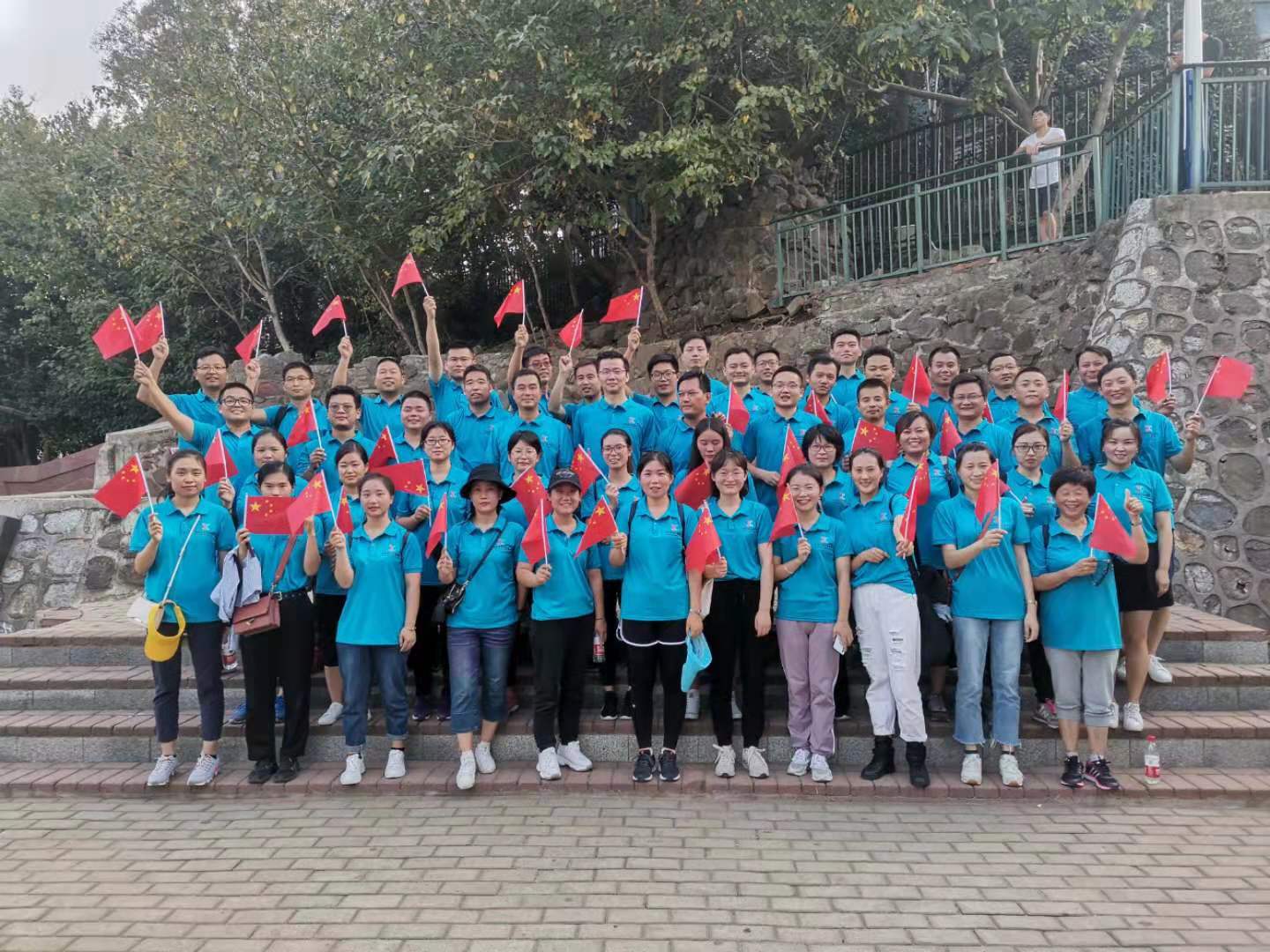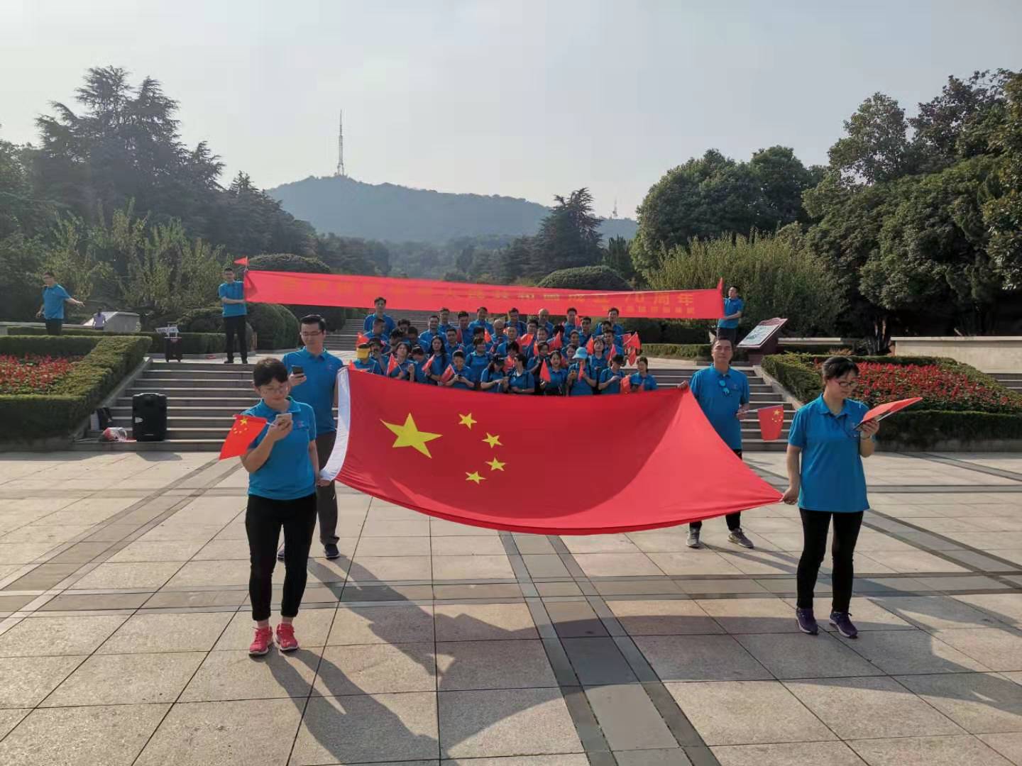 整個活動共分兩個階段,第一階段,參賽人員全部集中在大蜀山烈士陵園,圍繞國旗擺出心形合影留念,并集體合唱《我和我的祖國》、《中華人民共和國國歌》,以表達(dá)愛國之情,共同為祖國母親慶生。