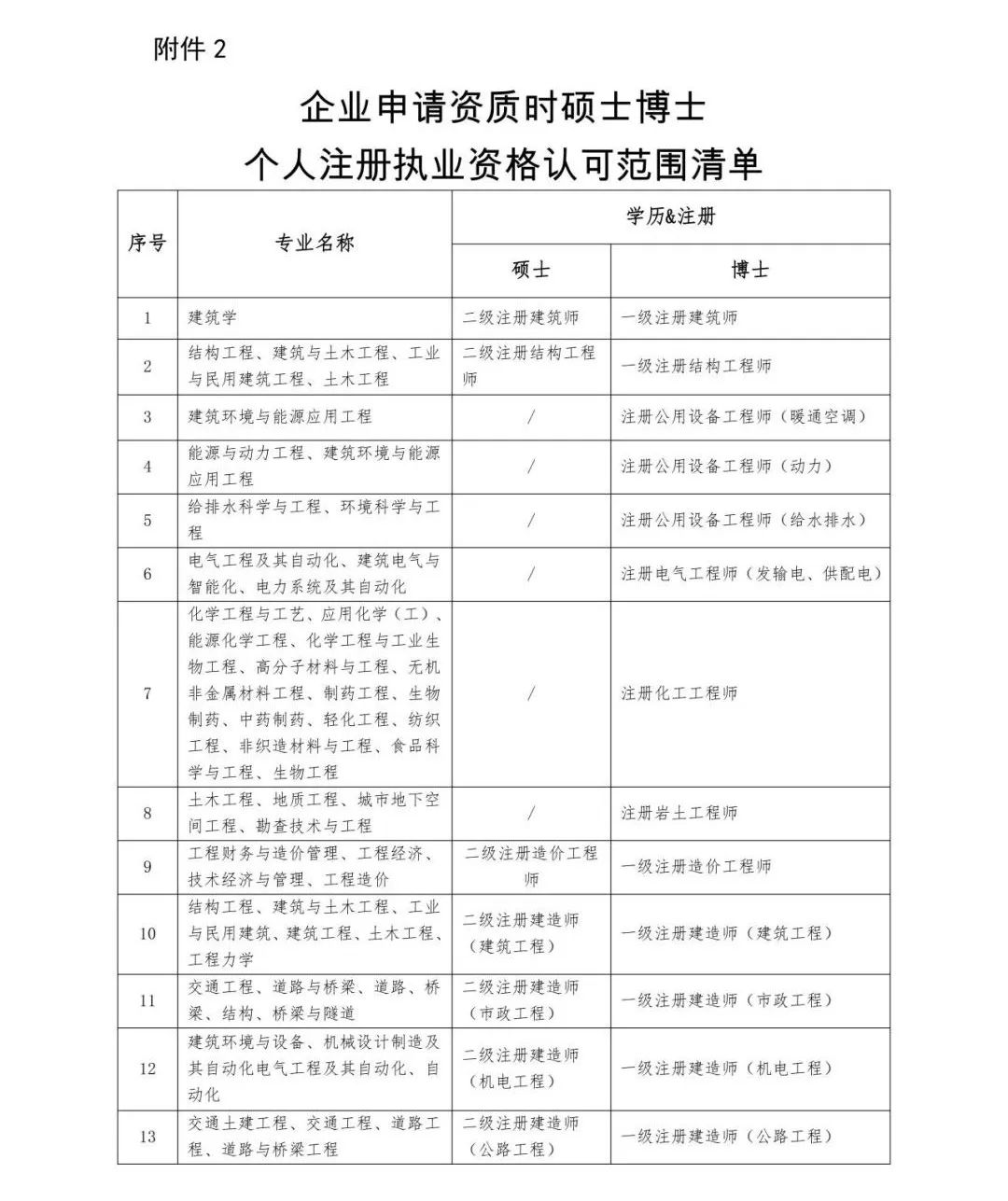 2.?企業(yè)申請資質時碩士博士個人資格認可范圍清單