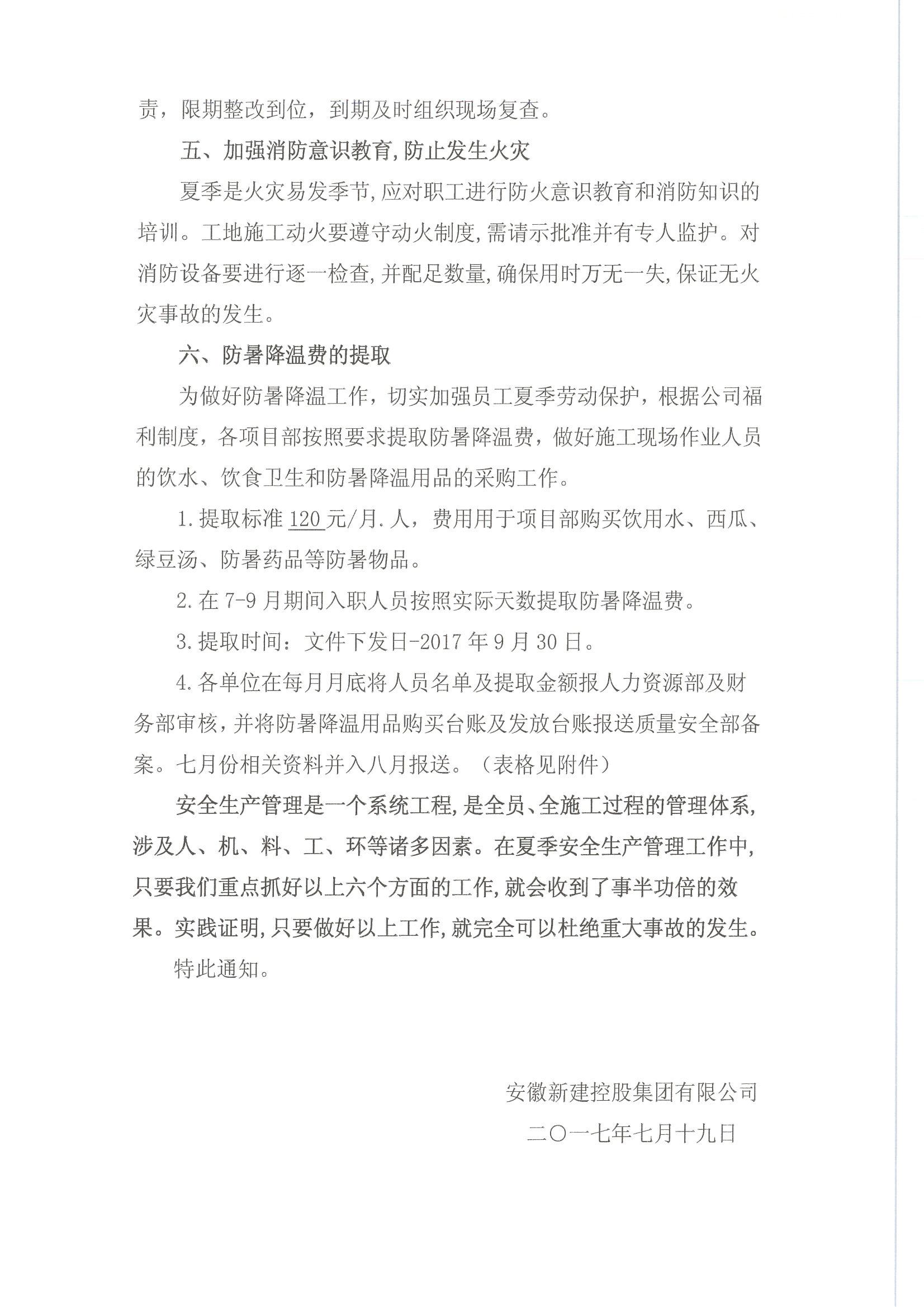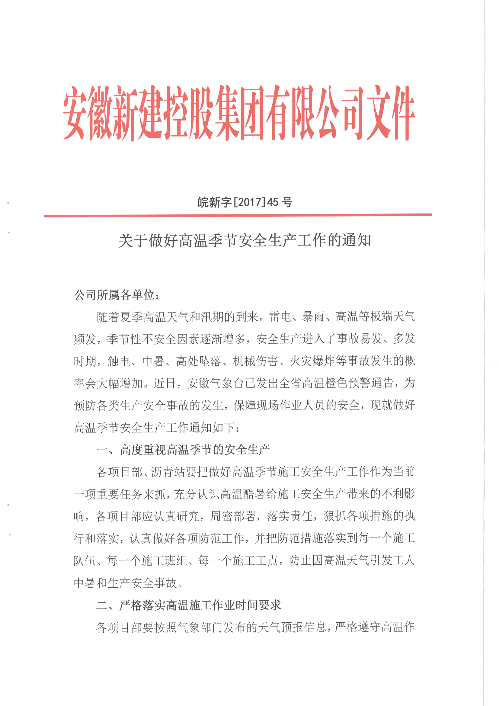 關于做好高溫季節(jié)安全生產(chǎn)工作的通知