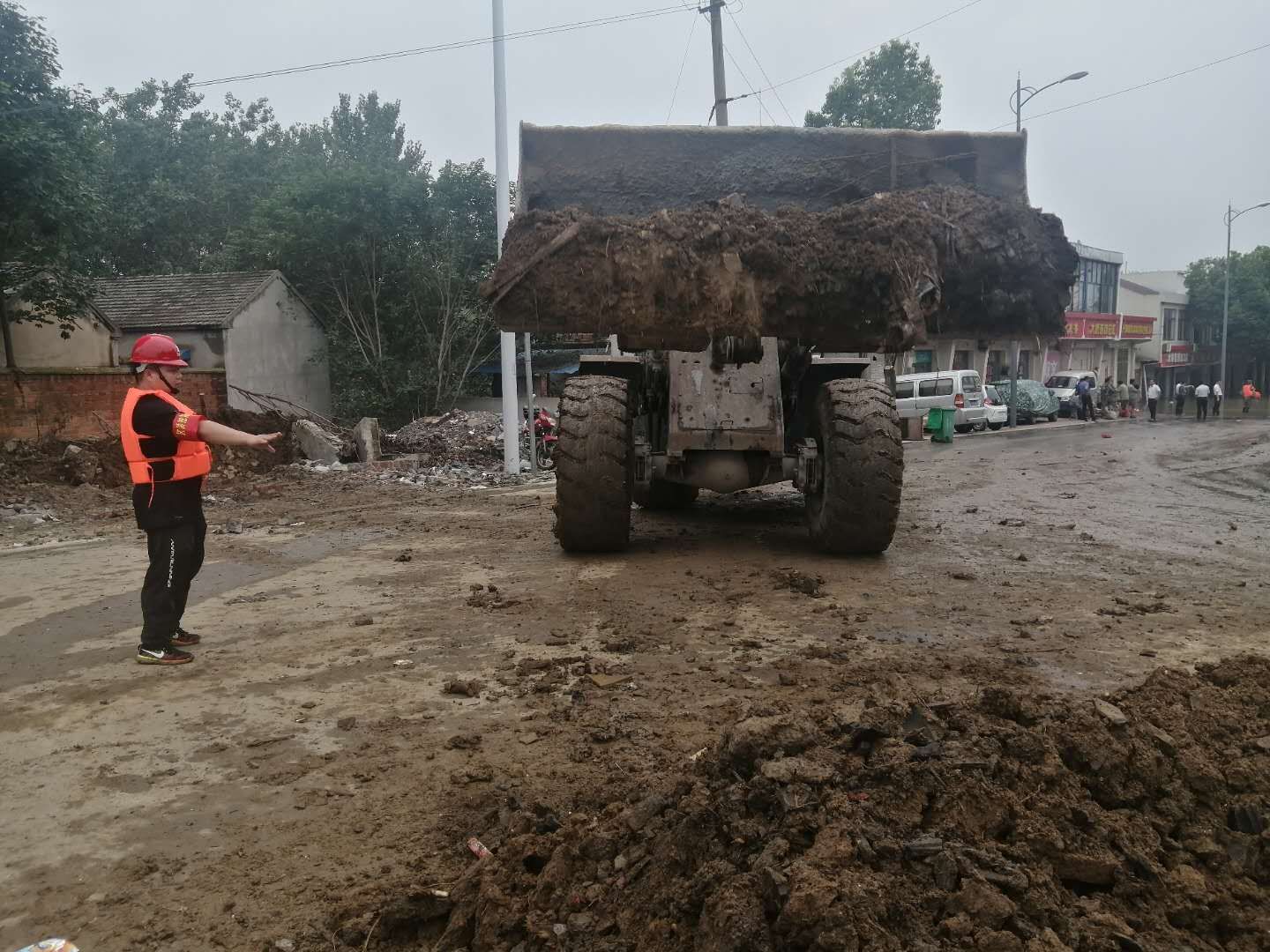 7月21日中午2:10分,突擊隊(duì)再次接到縣防汛指揮部命令,古河鎮(zhèn)滁河大堤漫堤汛情嚴(yán)重,要求突擊隊(duì)立即組織設(shè)備前往支援。突擊隊(duì)馬上安排平板車先行運(yùn)送4臺(tái)裝載機(jī),11名突擊隊(duì)員隨車出發(fā),于中午2:45分到達(dá)目的地,隨即與地方政府取得聯(lián)系,配合消防戰(zhàn)士、解放軍官兵及抗洪干部群眾運(yùn)送沙袋、物資。由于該處汛情較為嚴(yán)重,截止到發(fā)稿之時(shí),該處的抗洪救災(zāi)工作還在繼續(xù)當(dāng)中。