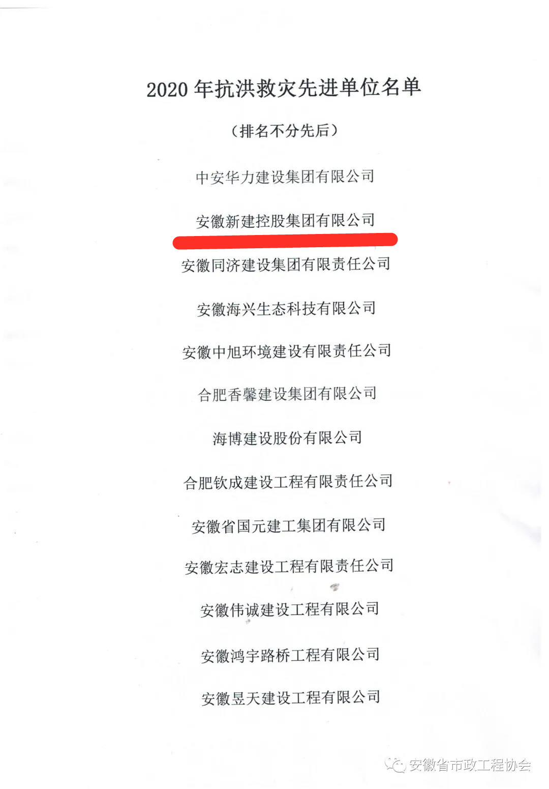 8月17日,安徽新建控股集團(tuán)獲評(píng)“2020年抗洪救災(zāi)先進(jìn)單位”榮譽(yù)稱號(hào)。