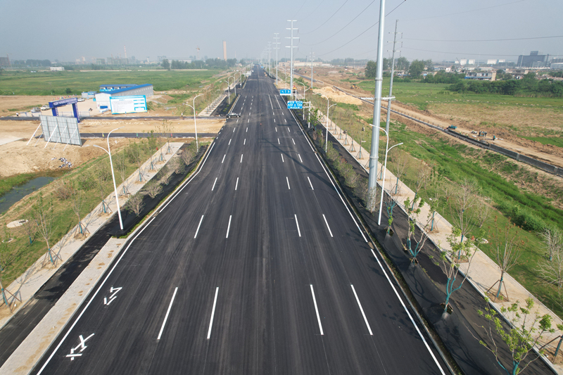 截止目前已順利完成淮河大道面層瀝青的攤鋪工作,進行標線施劃;另一條道路濠州路也在完成側(cè)石鋪設(shè)、人行道面磚鋪設(shè)、交通標志標牌安裝、路燈埋線及基礎(chǔ)澆筑的基礎(chǔ)上,進行瀝青攤鋪前的準備工作。