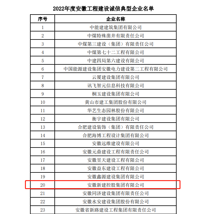 成立于1995年2月的安徽新建控股集團(tuán),至今已走過了28年的發(fā)展歷程!擁有建筑工程、市政公用工程、水利水電工程、公路工程四項施工總承包一級資質(zhì),和地基基礎(chǔ)工程、建筑裝飾裝修工程專業(yè)承包一級及橋梁工程、環(huán)保工程等多項專業(yè)承包資質(zhì),并具有國外工程承包經(jīng)營資格。公司始終堅持誠信為本,以質(zhì)創(chuàng)譽(yù),先后多次獲得安徽省優(yōu)秀建筑企業(yè)、AAA級信用企業(yè)、安徽省建筑施工安全標(biāo)準(zhǔn)示范單位,自1999年至今,一直被授予安徽省守合同重信用企業(yè)。秉承“惟德、惟信、惟實”的企業(yè)價值觀,公司將繼續(xù)堅持誠信經(jīng)營,持續(xù)彰顯企業(yè)品牌形象,立誠立信,為國家為社會創(chuàng)造更多的精品工程。