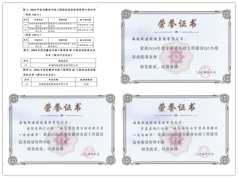 近日,在合肥開展的安徽省市政工程協(xié)會2024年度工程建設(shè)優(yōu)秀QC小組活動交流會上,集團(tuán)公司成功斬獲多項優(yōu)秀QC成果獎。同時,公司榮獲2024年度安徽省市政工程建設(shè)QC小組活動優(yōu)秀企業(yè)稱號,劉波同志榮獲QC小組活動優(yōu)秀推進(jìn)者稱號。