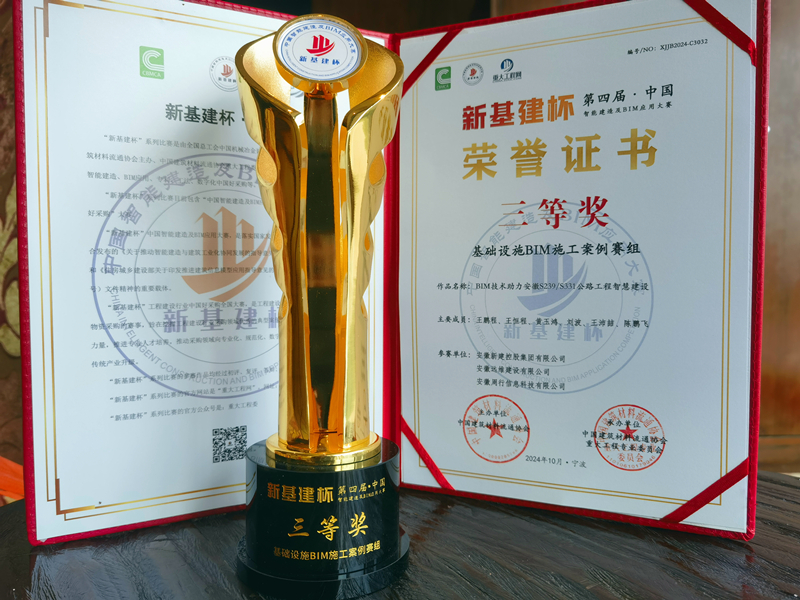 10月21日,由中國建筑材料流通協(xié)會主辦的第三屆中國重大工程數(shù)字生態(tài)大會暨第四屆“新基建杯”BIM應(yīng)用大賽優(yōu)秀成果交流會在寧波召開,集團(tuán)公司申報的《BIM技術(shù)助力安徽S239/S331公路工程智慧建設(shè)》榮獲大賽基礎(chǔ)設(shè)施BIM施工案例組三等獎。