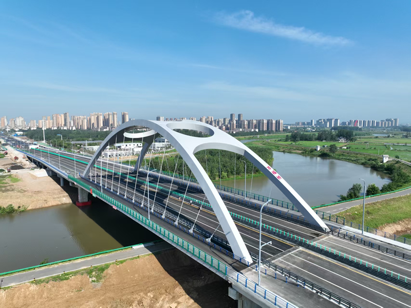 該項目道路等級為一級公路兼城市主干道,采用雙向六車道設(shè)計,設(shè)計時速60 公里,標(biāo)準(zhǔn)段紅線寬 32 米。路線總長約 2.445 公里,其中襄河大橋全長 653.5 米。主橋采用 120 米下承式鋼箱系桿拱橋結(jié)構(gòu),如鋼鐵長虹般橫跨襄河,成為全椒交通新地標(biāo);引橋則采用預(yù)應(yīng)力混凝土組合箱梁結(jié)構(gòu)。項目總投資額約 2.576 億元,合同工期為 720 日歷天。