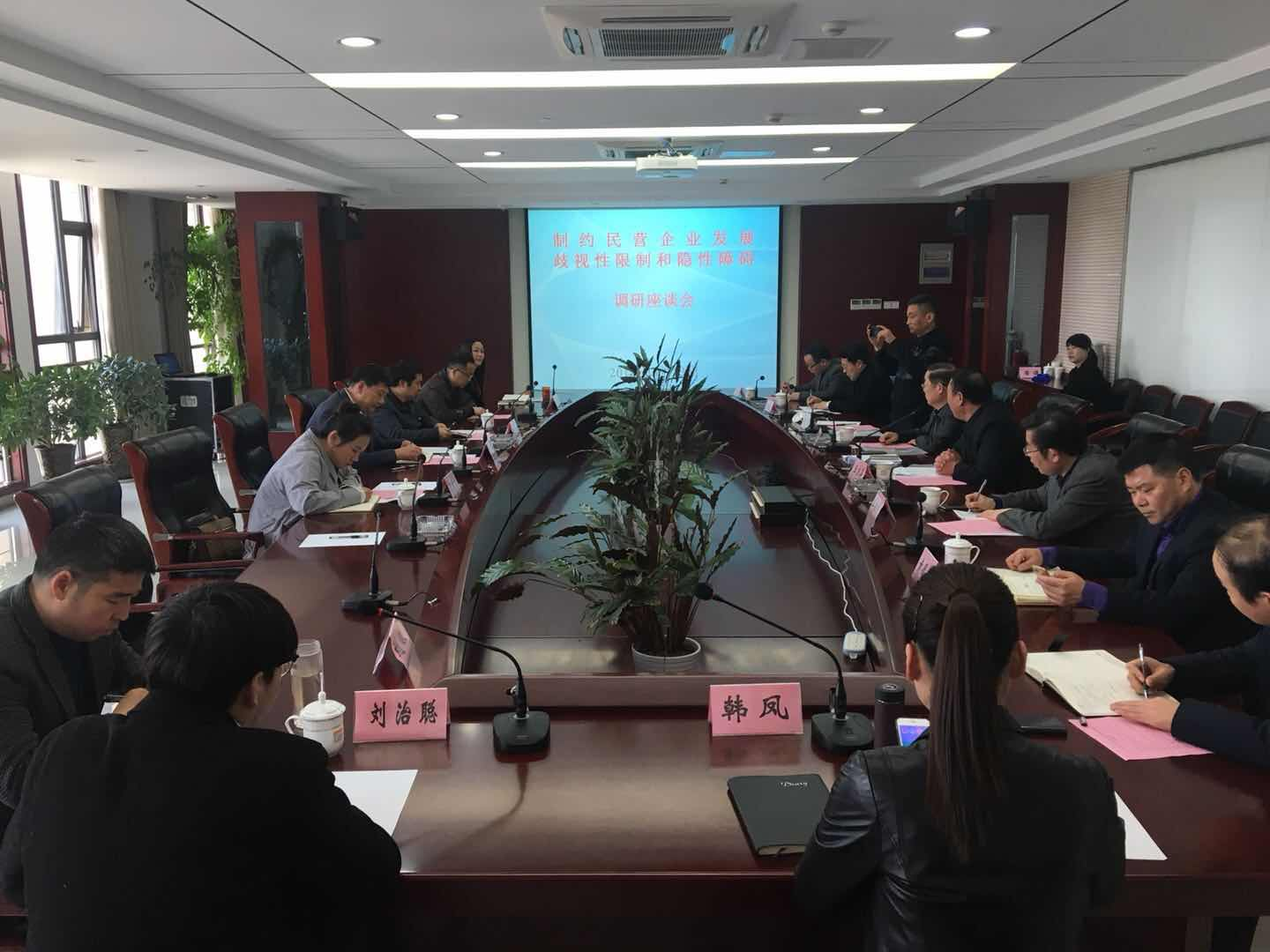 2018年3月13日下午,安徽省工商聯(lián)在我公司舉辦“制約民營(yíng)企業(yè)發(fā)展歧視性限制和隱性障礙調(diào)研座談會(huì)”。出席會(huì)議的有安徽省政協(xié)副秘書(shū)長(zhǎng)、安徽省工商聯(lián)黨組成員、副主席施廣勇、安徽省工商聯(lián)政策研究室主任李增流、安徽省工商聯(lián)機(jī)關(guān)黨委副主任科員袁志慧、安徽省城市基礎(chǔ)設(shè)施投資商會(huì)的監(jiān)事會(huì)主席、執(zhí)行會(huì)長(zhǎng)、副會(huì)長(zhǎng)、秘書(shū)長(zhǎng)等各位企業(yè)家代表。