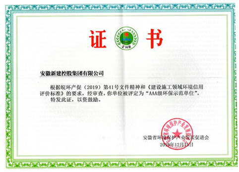 日前,安徽省環(huán)境保護產(chǎn)業(yè)發(fā)展促進會根據(jù)皖環(huán)產(chǎn)促(2019)第41號文件精神和《建設施工領(lǐng)域環(huán)境信用評價標準》公布了環(huán)保示范單位名單,我公司榮獲“AAA級環(huán)保示范單位”。
